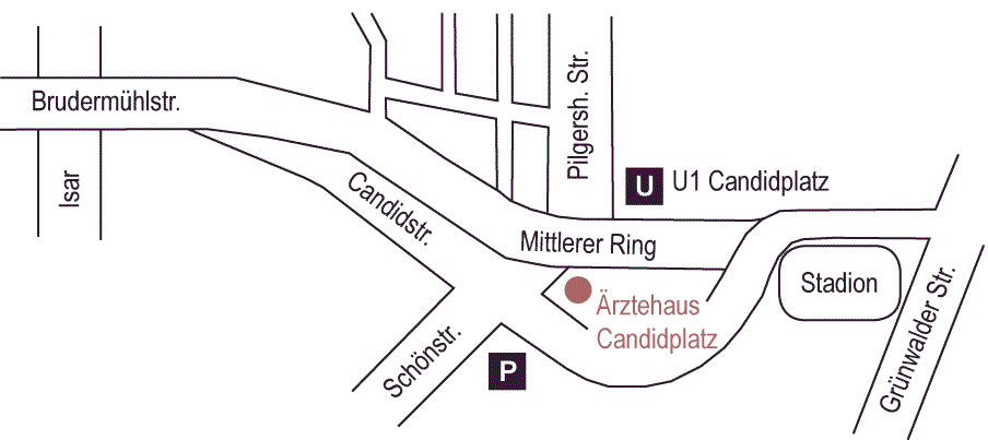 Die Praxis befindet sich im Ärztehaus Candidplatz 9 / I in den Räumen des dgvt-Ausbildungszentrums.